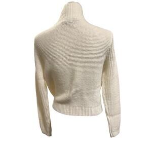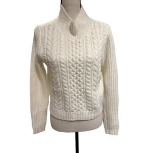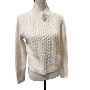 Loft Cable chunky Knit Cropped Sweater Nylon Acrylic Wool Mock Neck White S NWT