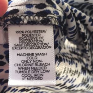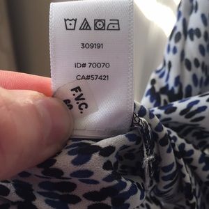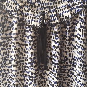 Blue, black and white cami with a ribbon tie. Goes great with navy blue or black suit.