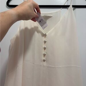 Chic cream camisole from LOFT. Features elegant button accents. Perfect for layering or wearing alone. Slight discoloration from hanger I think - shown in photo. NWT