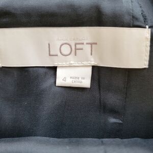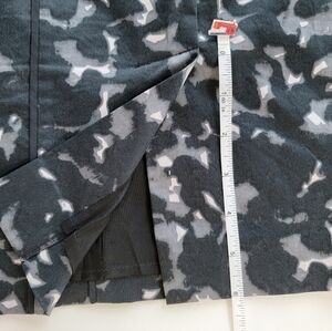 Loft straight/pencil skirt. Piping detail down front and back. Grey camo print cotton/spandex. Waist measures flat 15". 21" length. 8" exposed back zipper. 6" back kick pleat. Size 4.