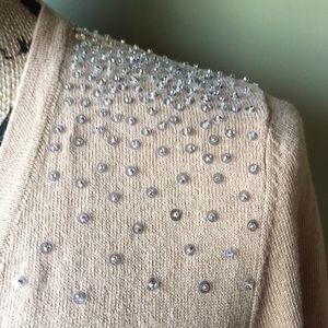 Cardigan sweater with sequins at shoulders on front. Can wear with dress or jeans. Never worn.