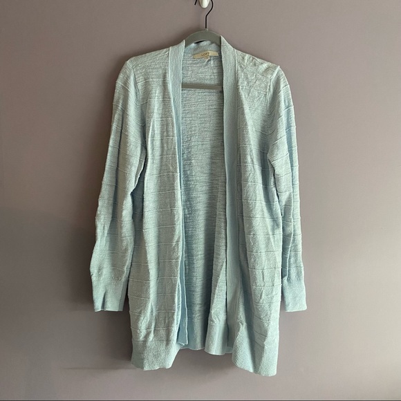 Worn only a couple times - light pale blue - textured open front cardigan