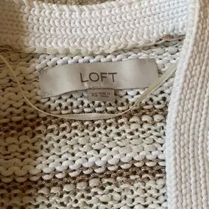 Like new! Off white/cream cardigan with bronze metallic stripes. Perfect layering piece for fall Cotton/polyester blend