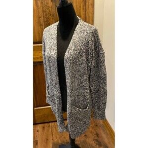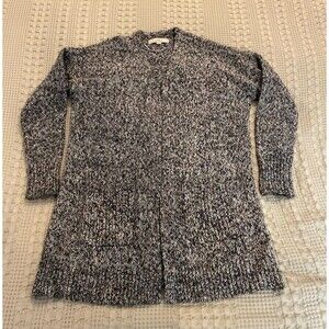 Loft Cardigan Sweater Chunky Oversized Medium Black White Variegated Knit
