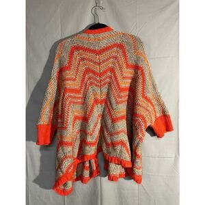 Loft Cardigan Sweater Womens Large Orange Chevron Western Cozy Alpaca Wool Beige