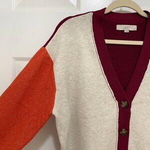 Loft Cardigan Sweater Womens S Colorblock Button-up Boxy Oversized Cotton Blend