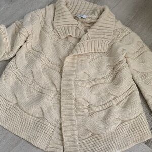 Loft Cardigan Wide Cable Knit Wool Blend Open Front Ivory Size XS/S chunky