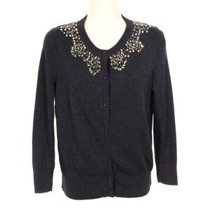 Loft Cardigan Women Small Gray Embossed Beads Stones Jeweled Long Sleeve