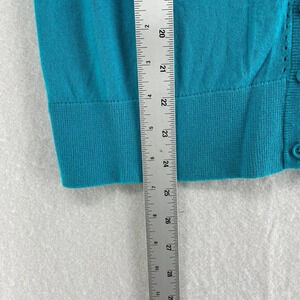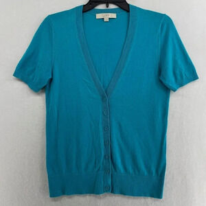 Loft Cardigan Women's Sz S Blue Turquoise Knitted Button-Up V-Neck Short Sleeve