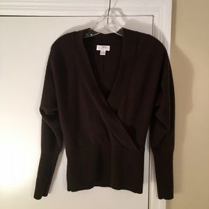 This sweater is 100% cashmere and has only been worn a couple of times. Deep plum in color, it is in excellent condition.