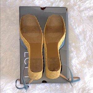 Elevate your style with these chic Loft brand Chambray espadrille wedge sandals with ankle strap. Perfect for any occasion, they offer both comfort and elegance. Literally worn once, majority inside. Other than the sole, there are zero signs of wear! These are lovely, I just have something very similar.