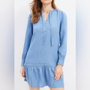 Loft Chambray Tie Neck Flounce Swing Dress. Sz M