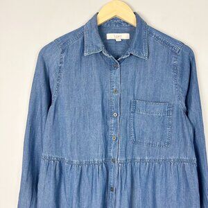 Loft Chambray Tiered Dress Country Western Fall Classic Size Small Women's