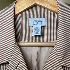 Like new, checked, brown and white, button-up coat with silky lining from Ann Taylor Loft. Tailored, crisp, professional, clean look.