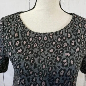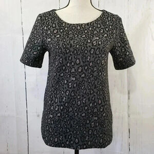 Ann Taylor Loft size XS short sleeve tee. Charcoal grey with leopard/ cheetah print. Rounded neck and hemline. Soft and comfy thick material. Excellent used condition.
