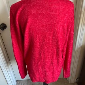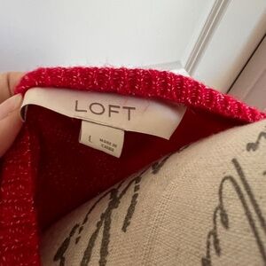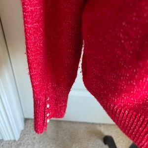 Loft Cherry Red Merle Sweater with White Pearl Buttons