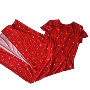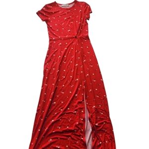 Such a fun dress! Like new! Never worn. So comfy with knit stretchy material. Front slit.