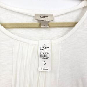 Loft Chiffon Pleated White Tee Shirt womens Size Small NWT