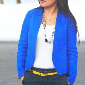 Cobalt blue blazer with ruffled pleating! Collarless, in great condition.