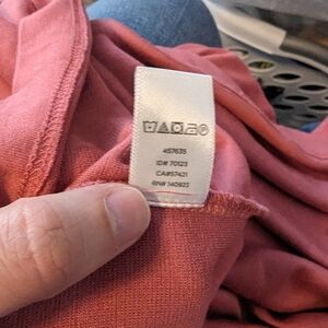 This top is in gently used condition. It is a medium weight jersey knit material. It has slits on the sleeves. The cuffs are fitted. The neck is a boat style. Please see photos for details.