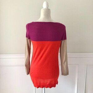Loft Colorblock Crew Neck Sweater Wool Blend Purple Orange XS