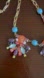 Vibrant statement necklace featuring a mix of orange, purple, blue, and gold tones. Perfect for adding a pop of color to any outfit.