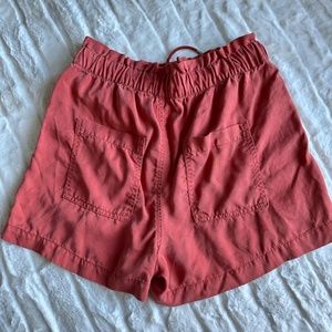 Gorgeous coral/melon color drawstring/paperbag shorts. Very comfortable and easy to wear. Fabric is very soft. Would be great over a swimsuit to the pool or beach, to a cookout, or any summer outing! New without tags - never worn.