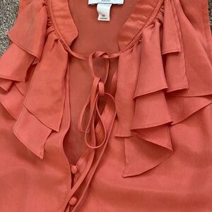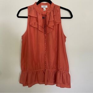 Loft Coral Silk Ruffled Sleeveless Blouse