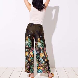 Loft Coral Springs Wide Leg Sateen Olive Green Pants Preppy Colorful Floral Fall