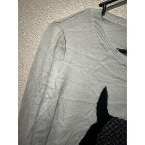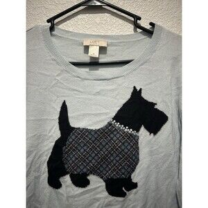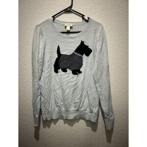 Loft Cotton Sweater Baby Blue Scottie Dog Rhinestone Collar Women Size Medium