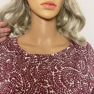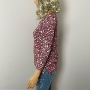 Loft Cotton Sweater Fern Print Crewneck Button Back Burgundy/Cream Size Small