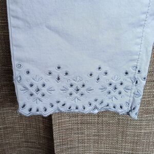 Loft Cotton White Lace Hem Twill Ankle Pants
