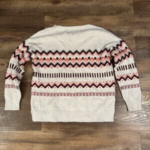 Loft Cozy Sweater Fair Isle Cottage Cotton Wool Blend Oatmeal Pink Burgundy READ