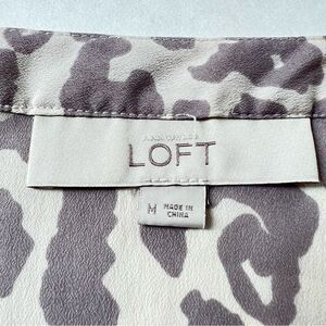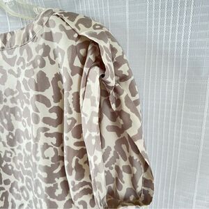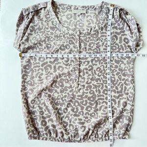 Loft Cream And Greig Leopard Print Elastic Bottom Short Sleeve Blouse Size M