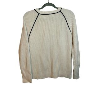 Pre owned excellent condition. Worn a handful of times. Gorgeous cream crewneck sweater with black button detailing. So cute and perfect for winter and the holidays. WOMENS size medium.
