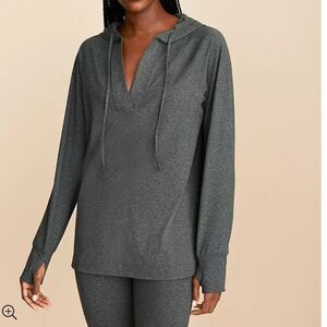 Soft, stretchy and breathable, this wrinkle-resistant style is always down to move - with comfort you'll endlessly love. Drawstring hood. Long sleeves. Kangaroo pocket. Side slits.
