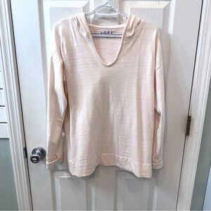 Loft Cream Colored V neck 100% cotton Hoodie Top/Tunic- excellent condition sz S