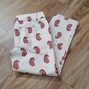 🔸️Loft Cream & Red Paisley Print Petite Pants Petite 00