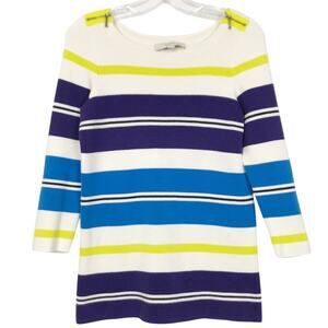 Loft Cream Yellow Blue Striped 3/4 Sleeve Sweater Sz XS