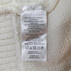 Loft Crew Neck Sweater Size S Pullover Contrast Striped Cuff Lightweight White