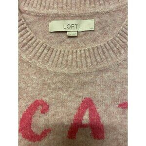 Loft Crew Neck Sweater XS Cat Mama Pink Pullover Top