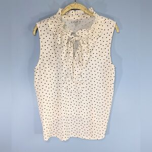 Loft Crewm/Black Polkadot Ruffled Tiennexk Sleeveless Top