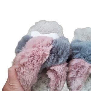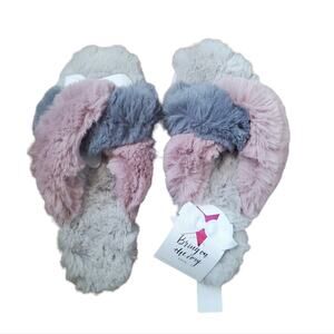 gift presents Christmas holiday birthday hostess cozy criss-cross x crossed strappy fuzzy faux fur furry indoor shoe slipper casual sleepwear bnwt unworn work from home wfh pastel muted neutral feminine pedicure