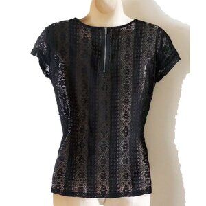Loft Crochet Lace Cap Sleeve Top XS Exposed Back Zipper Black