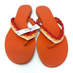 Loft Crochet Strap Flip Flop Sandals 9 Orange Red White NWT - defect please read