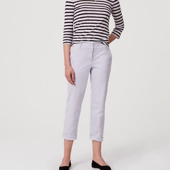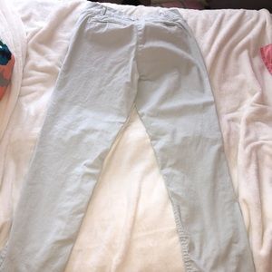 Cute, almost periwinkle pants. They fit loosely and cropped around the calves, aren’t see through, and are a nice compliment to any outfit