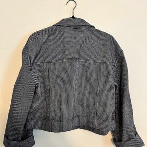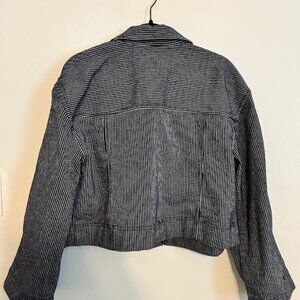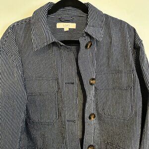 Loft cropped denim jacket (denim and white stripes). Super cute for fall! Only worn once.