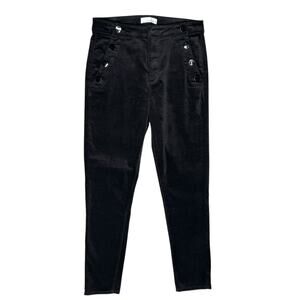 Loft Curvy Fit Mariner Black Velvet High-Waisted Button Detail Pants Size 28