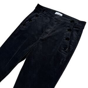 Loft Mariner Black Velvet High-Waisted Button Detail Pants Size 28 Curvy