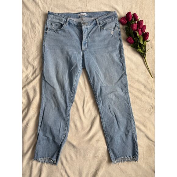 Get ready to rock these Loft Curvy Skinny Crop Jeans! These jeans are in excellent condition and come in a size 14/32. The curvy fit is designed to hug your curves in all the right places, while the skinny crop style is perfect for showing off your favorite shoes.